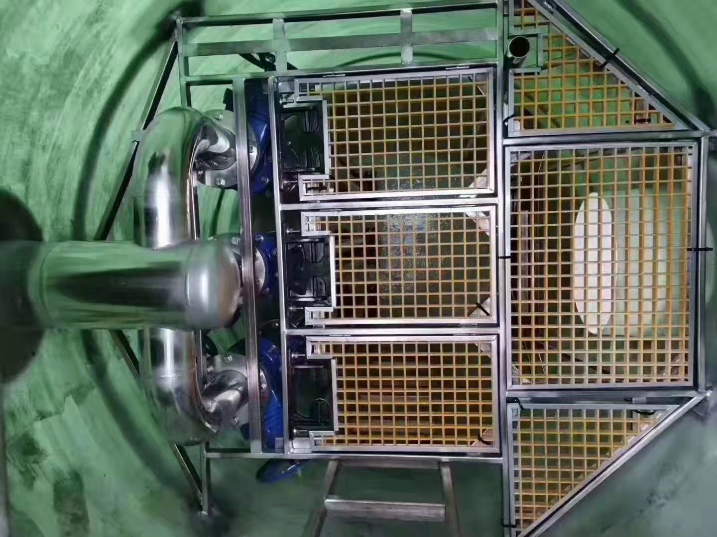 3、雨水一體化預(yù)制泵站的集水池與機(jī)器間在同一構(gòu)筑內(nèi)時(shí),集水池和機(jī)器間需用防水隔墻離隔,不允許滲漏,做法按結(jié)構(gòu)規(guī)劃規(guī)范要求;分建式集水池和機(jī)器間要堅(jiān)持必定的施工間隔,以防止不均勻沉降,其間集水池多為圓形,機(jī)器間多為方形。