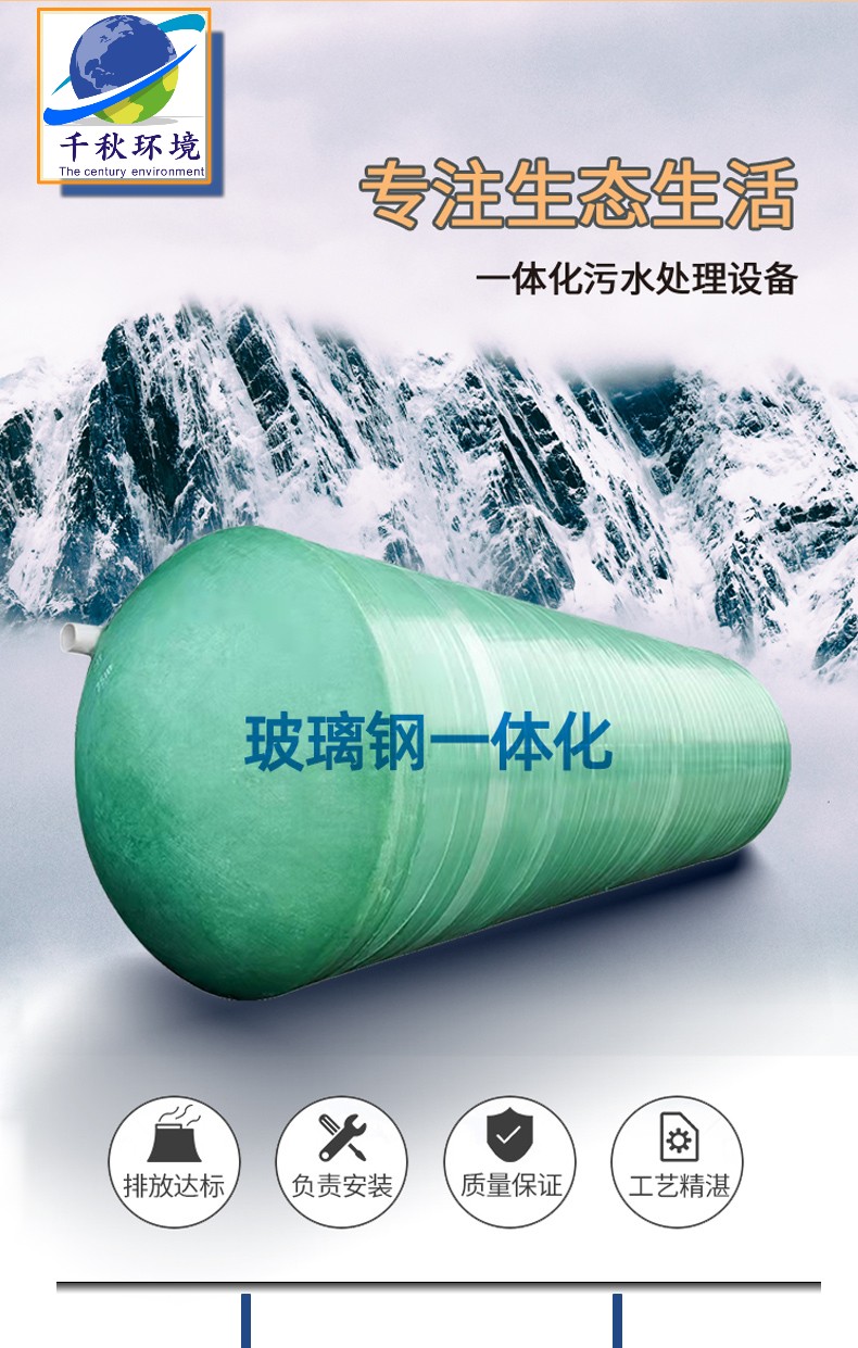 (2)地埋式玻璃鋼一體化污水處理設(shè)備整體化制作,一體式成形,無接縫、無滲漏、無污染,設(shè)備整體埋入地下,冬天防凍,夏天防洪,設(shè)備上面可以綠化,環(huán)境美觀。